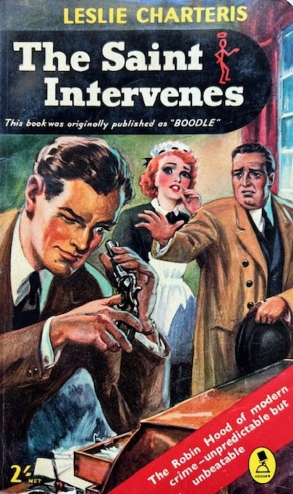 Also providing a nice fifties cover is The Saint Intervenes by Leslie Charteris (Hodder, 1956).
