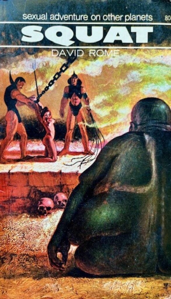 Finally, by the late 1960s Horwitz were heavily involved in producing ‘Adult’ books, usually under their Scripts imprint. One of these was Squat (1970) by David Rome (pseudonym for David Boutland). Promising “sexual adventure on other planets”, it is almost unreadable and, apart from the cover, is pretty nondescript.