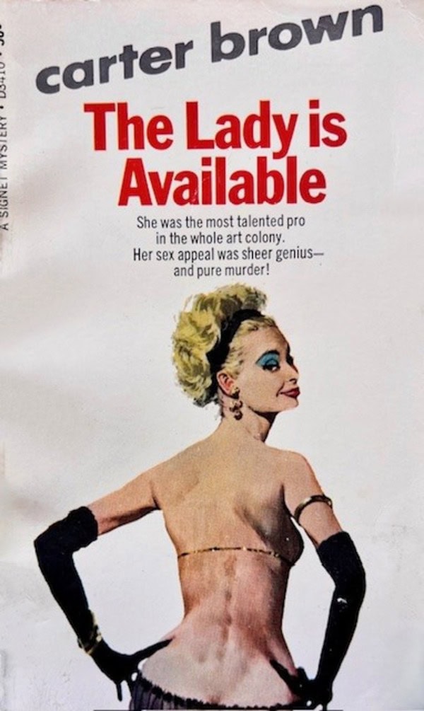 McGinnis did one hundred cover illustrations for the American editions of the Carter Brown books. The Lady Is Available is probably not one of his most striking covers, but it does showcase the ‘McGinnis’ formula of a beautiful, underdressed woman alone, usually making eye contact with the potential reader.