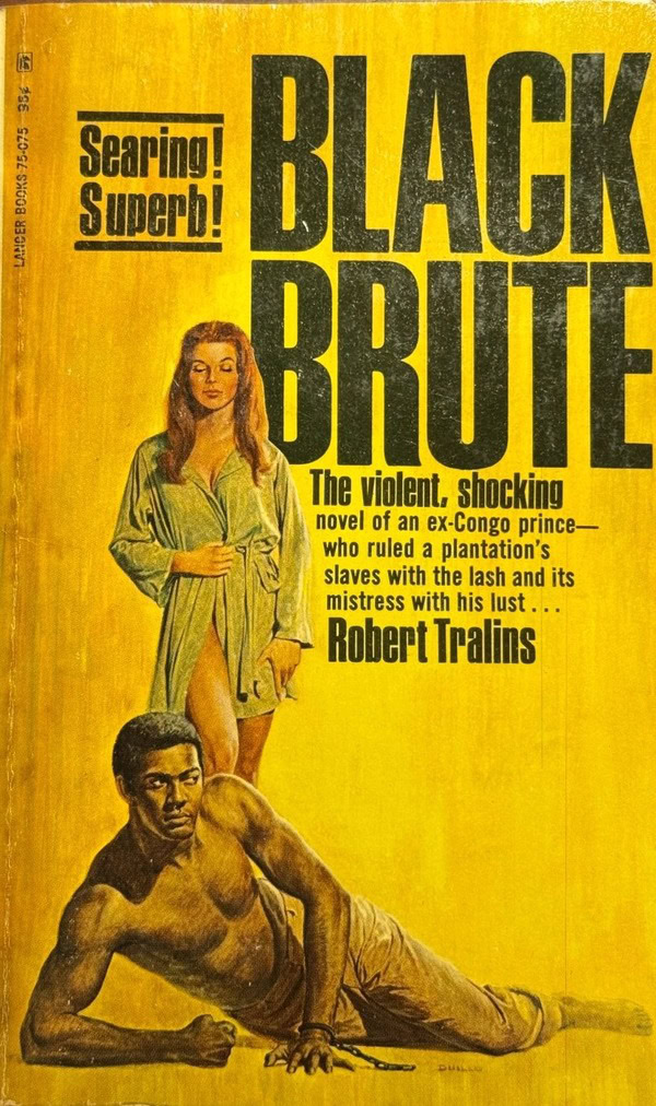 Black Brute was the first of Tralins’ plantation novels featuring the ex-Congo Prince, Brutus. The artwork on this original Lancer edition again promises inter-racial sex and violence.