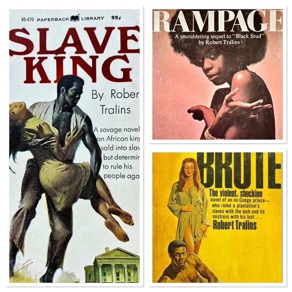Prolific author Robert Tralins was one of the main American contributors to the genre. Tralins started in the pulps and is believed to have written over 250 books under various names and across multiple popular genres. He would seem to have written seven plantation-styled books, which, like the rest of his genre output, featured lots of sex and violence. Not surprisingly, his books have been criticised for their predictable plotting and poor writing, and how they depict “black people in a dehumanizing and hypersexualized manner”. Nevertheless they proved very popular in America and the United Kingdom, and elsewhere.